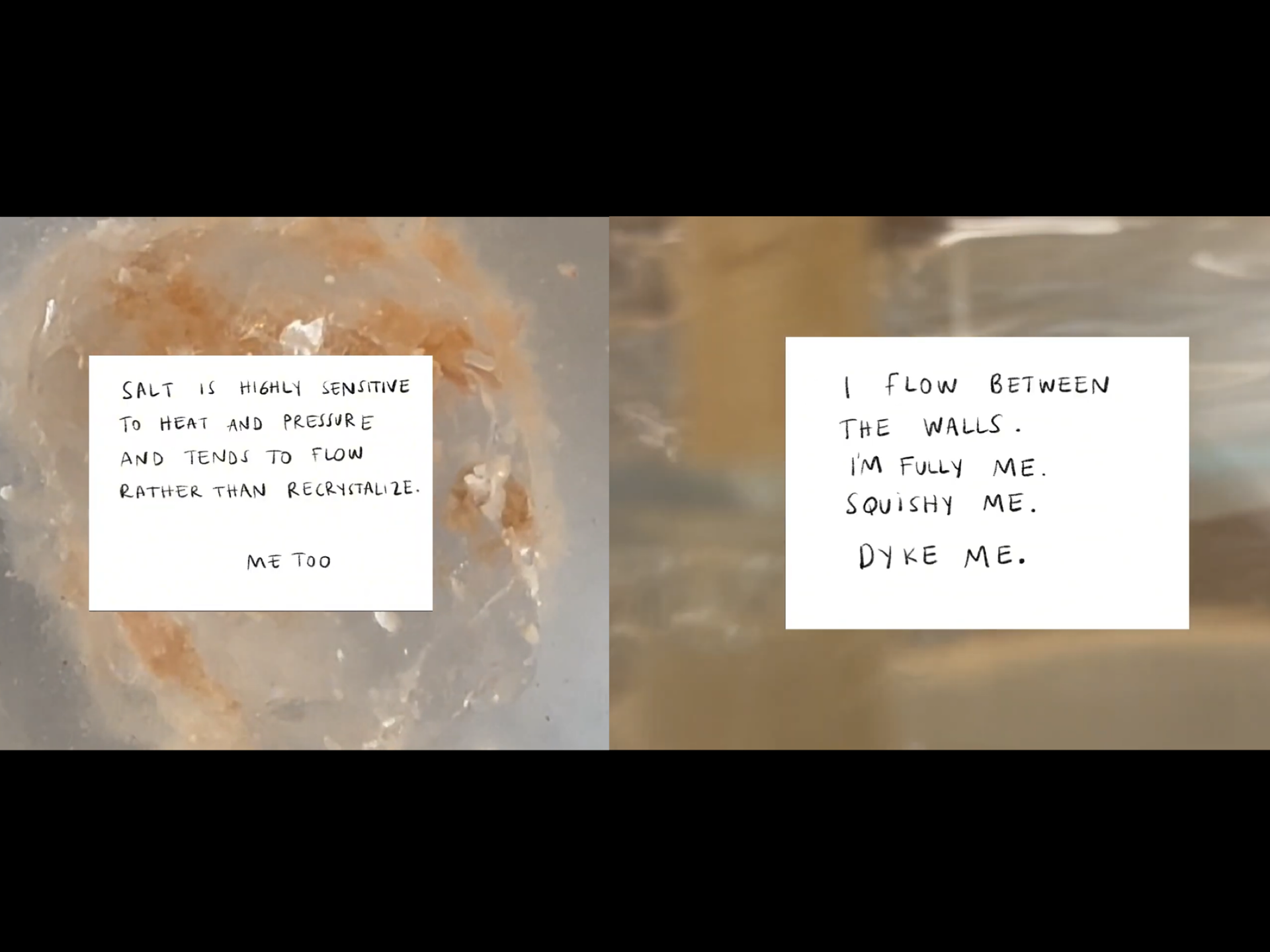 during her residency at the schmiede hallein, Daniela researched the geological history of the salt mines in the region, exploring the dissolution of rigid human taxonomies by contrasting geological processes with her human trajectory. the metaphor of becoming a salt dyke, a geological formation of salt growing into fractures under tectonic forces, reflects my sense of fluid, non-static existence (mirroring the behavior of rocks and minerals under pressure) while playing with the multiple meanings of the word dyke. by embodying the salt dyke, she blurs the lines between living and non-living, human and mineral. salt’s malleability reflects her own transformation, resisting categories that attempt to define me.